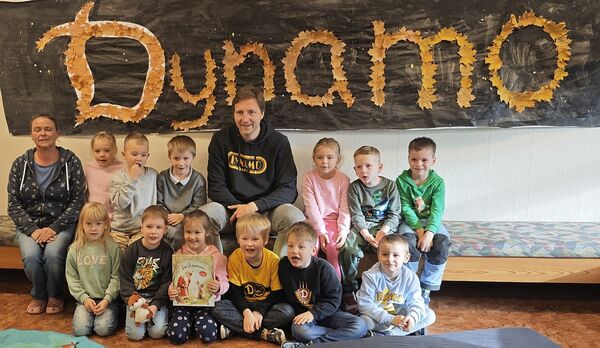 Das Bild zeigt einen Sternenhimmel und den Original Dynamo-Schriftzug, erstellt aus gelbem Herbstlaub. In der Bewerbung beschrieben sich die Kinder Dynamo als „echte Fußballhelden“, wünschten sich einen „echten Fußballer“ als Vorleser und erklärten, dass Lesen und Sport „super zusammenpassen“. Sie hoben hervor, dass sie in der Kita und in den Sportvereinen Spaß, Teamgeist und Zusammenhalt zählen – und wünschten sich zum Abschluss ein gemeinsames Erinnerungsfoto für ihre Kita-Geschichte. Mit Hartmanns Besuch ist dieser Wunsch nun Wirklichkeit geworden.