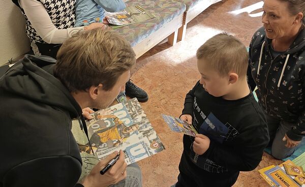 Marco Hartmann, der viele Jahre Kapitän von Dynamo Dresden war und für seinen Einsatz und Teamgeist auf sowie neben dem Platz geschätzt wird, las den Kindern im Alter von drei bis sechs Jahren aus dem Buch „Der Ostermann“ von Marc-Uwe Kling und Astrid Henn vor.